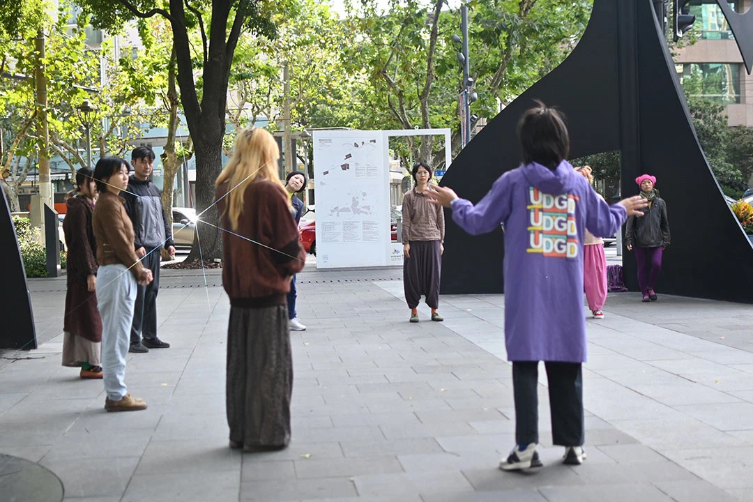 木偶在参与者的帮助下于草坪上舞动、在山峦形状的雕塑上“攀爬”、将雕塑“顶”在头上……深入映射着剧名“纠纠葛屦”,代表着一种与自然万物和谐共生的关系。