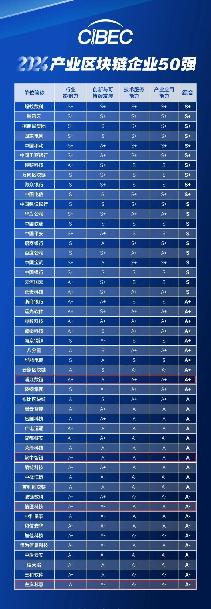 在备受瞩目的2024产业区块链企业50强榜单中,来自静安区的上海浦江数链数字科技有限公司、上海软中智链数字科技有限公司、上海信医科技有限公司以及上海左岸芯慧电子科技有限公司等4家企业成功入选。