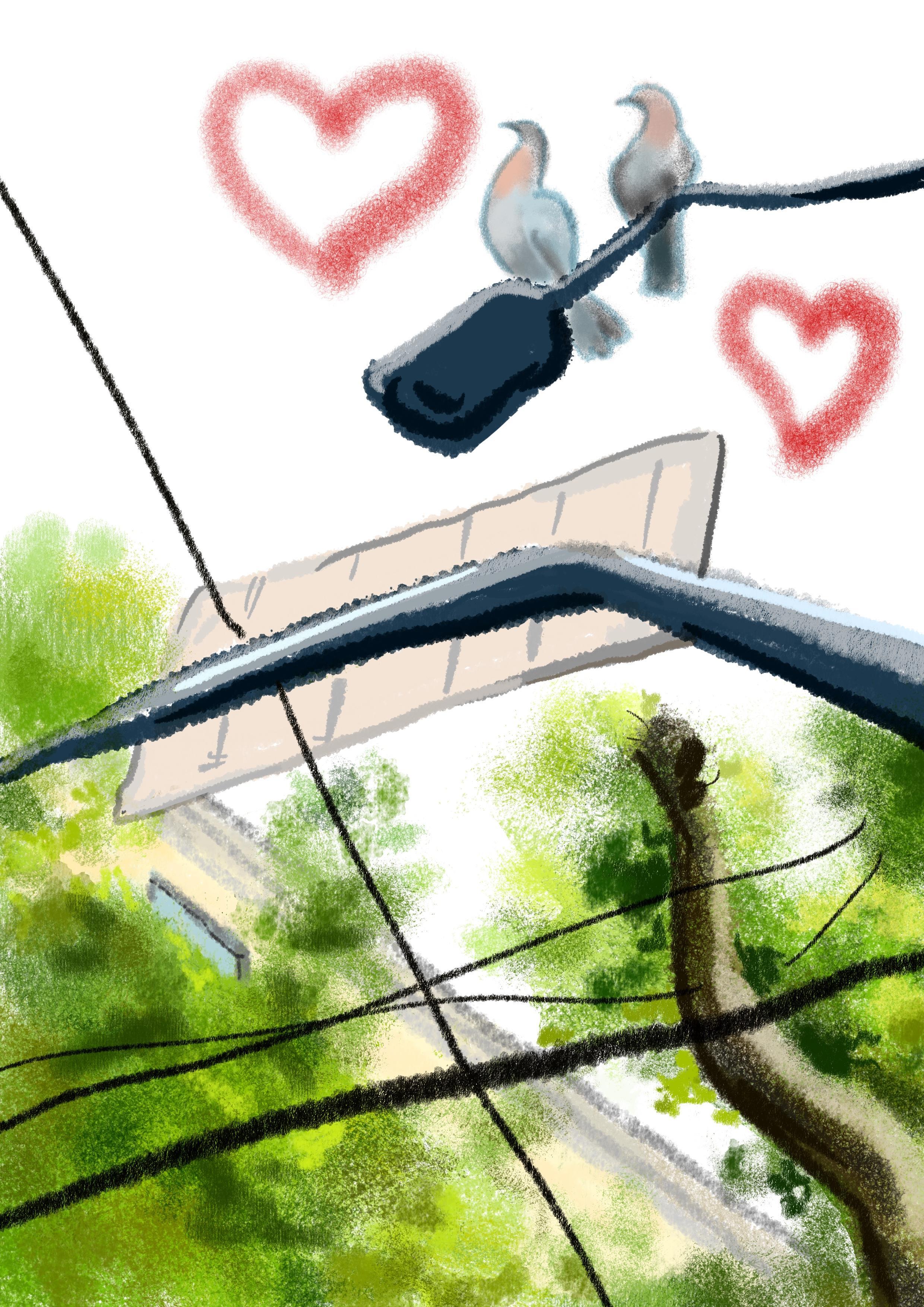 小马路两边的梧桐还未完全披上焦糖色,路灯上停驻的鸽子成双成对眺望远方。原来秋天也可以有罗曼蒂克的粉红泡泡。