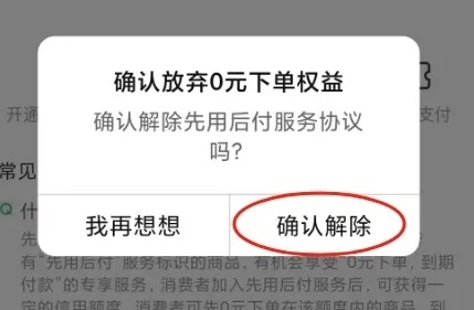 另外,平台还要设置简单便捷的取消方式,当消费者不需要“先用后付”时,可以方便地关闭。