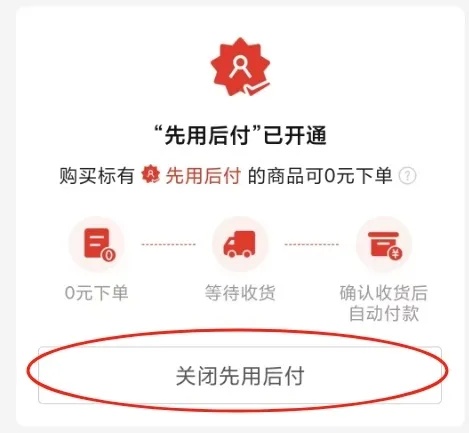 开启了“先用后付”服务