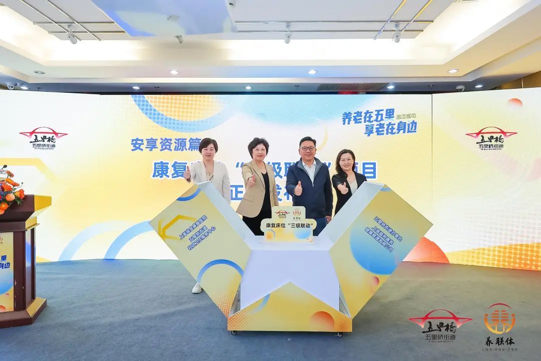 现场,五里桥街道、瑞金康复医院、五里桥社区卫生中心、福苑康养健康管理有限公司共同发布康复床位“三级联动”机制,以合作促进服务效能提升,让机构、社区、居家的康复服务深度融合,进一步充实五里桥街道养老服务内涵。