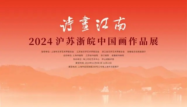 11月9日下午,由上海市文学艺术界联合会、江苏省文学艺术界联合会、浙江省文学艺术界联合会、安徽省文化和旅游厅指导,上海书画院、江苏省书画院、浙江画院、安徽省书画院联合主办,海上印社艺术中心和尹山湖美术馆协办的“诗画江南—2024沪苏浙皖中国画作品展”在上海文艺会堂开幕。上海市文联领导和上海、江苏、浙江、安徽画院领导、嘉宾、参展艺术家以及社会各界来宾参加了开幕式。