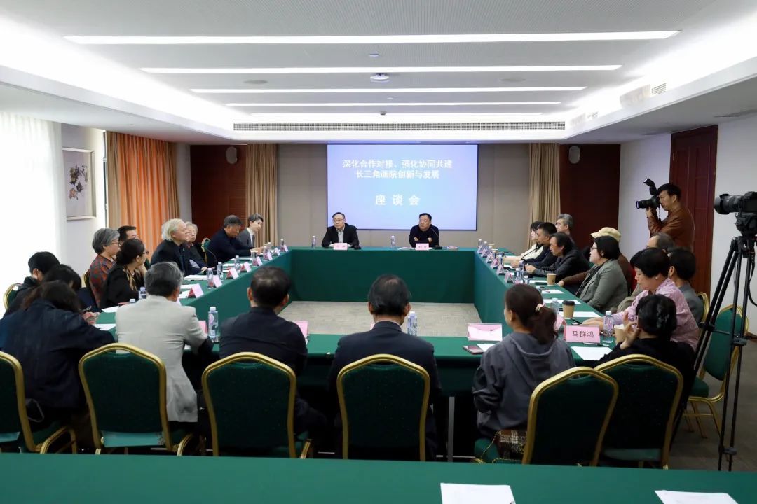 展览开幕活动后举办了“深化合作对接、强化协同共建—长三角画院创新与发展座谈会”,上海市文联领导、三省一市画院领导和部分参展艺术家代表参加了座谈会。座谈会围绕“立足江南文化,加强长三角画院合作交流”、“着眼江南文化,围绕打造长三角文艺大码头的目标,共推长三角文艺精品力作,共创长三角艺术品牌”、“延伸联络手臂,发挥合力效应,共筑长三角文艺人才高地”、“通过合作共建,加强优势互补,为长三角文化的融合交流、推陈出新贡献力量”等主题展开讨论。主办方表示,通过本次展览和活动,上海书画院、江苏省书画院、浙江画院、安徽省书画院今后将进一步深化合作对接、强化协同共建,推进画院的创新和发展。深入挖掘江南文化的精神特质,积极传播江南文化创新发展理念,共同推动江南文化繁荣发展,彰显 “立足时代、弘扬文脉、助力发展”的使命担当。