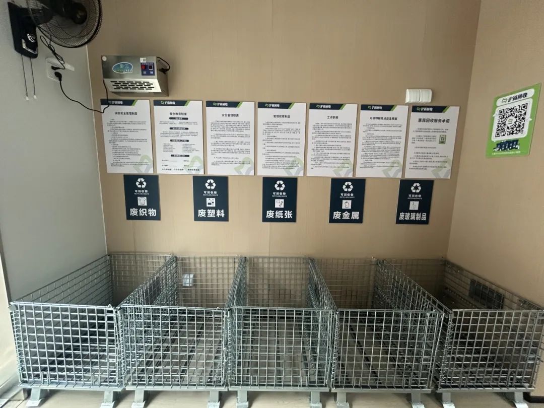走进服务点,五品类精细化回收框整齐排列,玻璃、金属、塑料、纸张、织物等可回收物均可在此进行分类投放。这一举措不仅有助于提升垃圾分类的精准度,还有效促进了资源的循环利用。