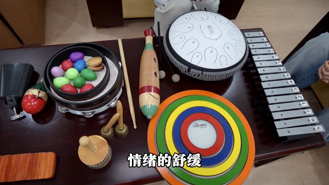 “在每次治疗前,我们都会让患者填写sas焦虑自评量表,通过每次得分情况以及患者具体需求,制定个性化的治疗方案,确保治疗效果的最大化……例如对于周同学来说,音乐可以帮助她放松身心、减轻焦虑和压力,所以我们将‘用乐器模拟情绪’‘共同弹奏’等环节,融入在治疗过程中。”上海十院音乐治疗师、心理治疗师盛子家表示。