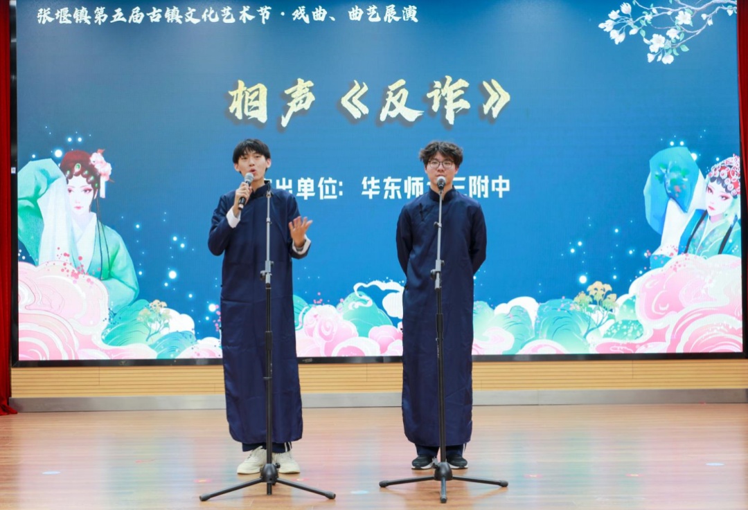 11月22日下午,“曲进校园 艺展留溪”第五届古镇文化艺术节·戏曲、曲艺展演在张堰镇社区学校精彩上演。来自华东师大三附中、张堰中学、张堰二中、张堰小学、张堰幼儿园五校的师生和“张志宽、赵松涛”快板书艺术工作室青年演员以及社区爱好者等近百人参与这场视听盛宴。现场,五校的校园文艺“新苗”、青年演员轮番上台。越剧《李娃传·莲花落》《追鱼·观灯》、相声《反诈》、钹子书《唱唱伲金山》《小八腊子讲上海方言》等节目赢得现场阵阵掌声。
