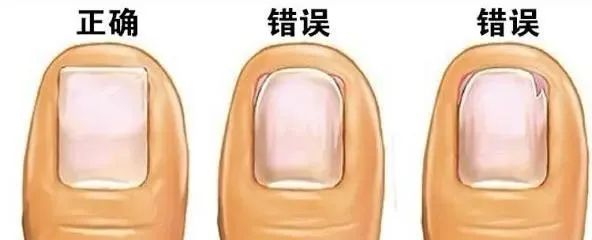 ④ 剪指甲时,要剪成轻微的弧线,不能把两侧的侧角剪掉;
