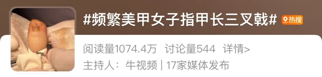 “一片穿戴甲看似没有什么重量,但其实对指甲会产生很大的负担。”医生提醒,美甲一定要克制,千万不要频繁做。