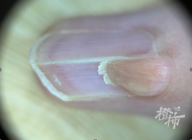 同时,不恰当或过度美甲,都会损伤到甲母质及甲母质周边的组织,易形成组织炎症和异常增生,增生的组织就会从缝隙中长出来,侵占原有甲板生发部位。