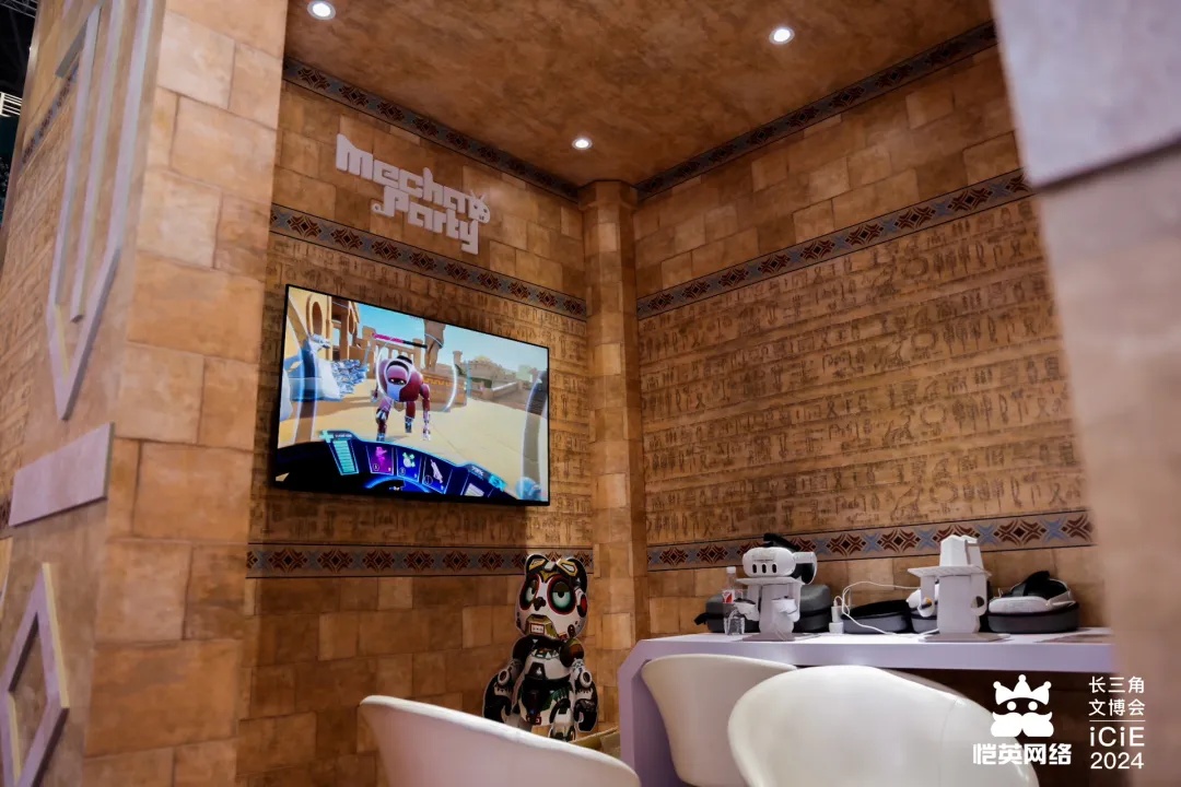 除了《盗墓笔记:启程》外,恺英网络还展示了旗下自研机甲对战类VR游戏《Mecha Party》。这款游戏已在海外多个平台上线,并以其独特的座舱式玩法有效解决了3DVR游戏的眩晕问题。在展会现场,观众可以穿戴VR设备,化身为机甲战士,与朋友或陌生人进行2v2实战对战。这种新颖的互动方式吸引了大量观众驻足体验,感受未来科技的魅力。