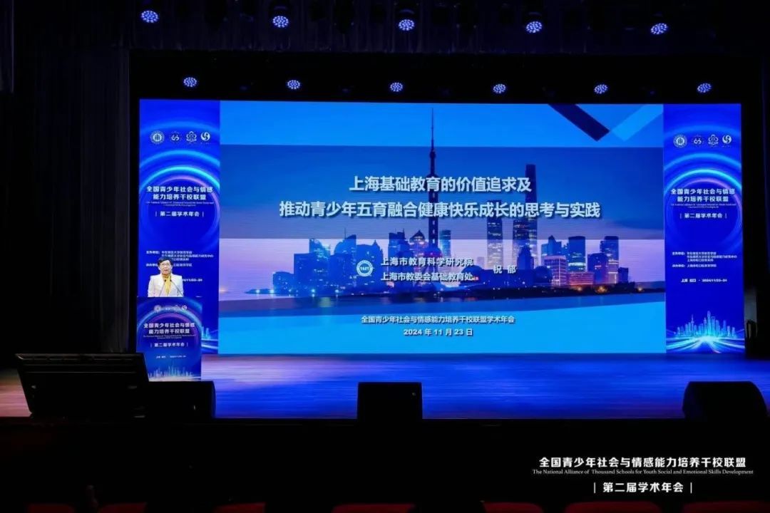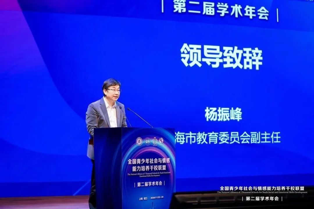 年会举行现场本届年会聚焦教育高质量发展背景下青少年社会与情感能力培养主题,围绕“家校合作”“学校变革”“教师发展”“课堂教学”四个方面征集社会与情感培养案例,吸引700余名来自全国的专家学者、学校代表与教育从业者,共同探讨新时期教育“情感转向”的前沿成果与落实路径,以区校联动护航孩子的幸福成长。本届年会由华东师范大学教育学部、社会与情感能力研究中心和上海市虹口区教育局共同主办。“华东师范大学社会与情感能力研究中心虹口中心”成立开幕式上,上海市教委副主任杨振峰指出,近年来,“社会与情感能力”培养是全球教育发展的关键性议题,也是促进人全面发展的应有之义。上海在“绿色指标”3.0版本中进一步完善了“社会与情感能力”相关指标,并对监测点的测评予以改进,彰显了上海对全球教育“情感转向”的积极回应。他期望本届年会上,联盟校成员能够借助全国青少年社会与情感能力培养千校联盟平台,踊跃交流实践经验,科学探索培养模式,推动基础教育高质量发展,落实教育的“情感转向”。