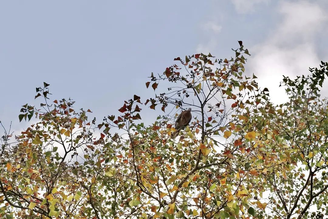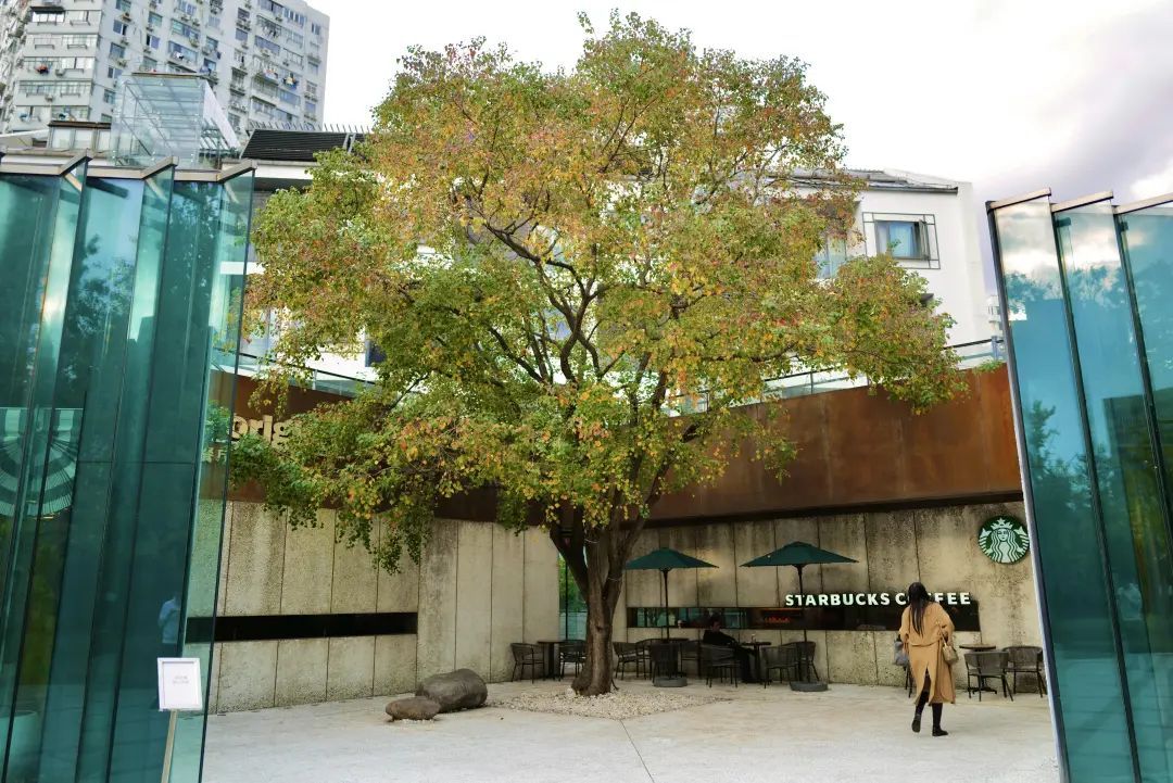 推荐观赏点位:图中的乌桕树位于南车站路600弄20号甲,有兴趣的市民可以前去拍照打卡。坐在缤纷的乌桕树下享受阳光和咖啡,好不惬意。