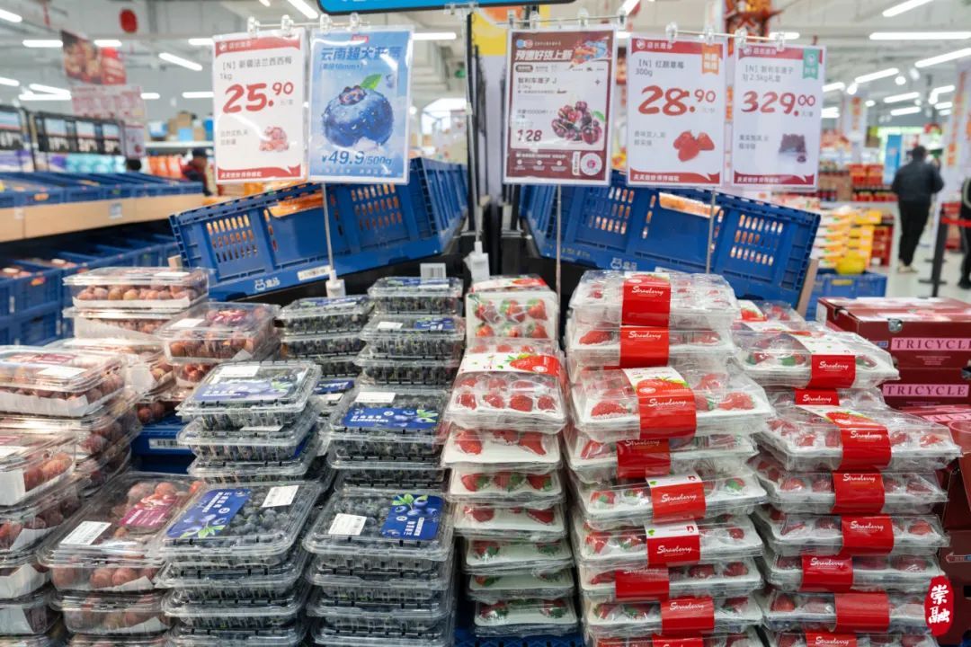 随着冬季脚步的临近,香甜多汁的车厘子和草莓陆续上市。近日,记者实地走访了崇明多家水果销售点,发现这两种水果售价虽高,却很受市民“追捧”。 在崇明的一家生鲜超市内,记者看到一盒盒鲜艳欲滴的红颜草莓整齐地排列在货架上格外引人注目。草莓旁边,还有来自智利的车厘子。 超市负责人告诉记者,由于车厘子和草莓刚刚上市,供应量相对较少,因此价格较高。目前,超市在售草莓有红颜和章姬奶油两个品种,产地分别是辽宁丹东和山东济南。车厘子则按大小售卖,从单J到4J,价格不等,5斤一箱装的车厘子价格较为优惠。一位正在挑选车厘子的顾客告诉记者,刚上市的车厘子价格确实比较高,不过口感很好,汁水也多,还是忍不住想买一些尝尝。 随后,记者又来到城内一家水果店,看到保鲜柜里也摆放了草莓和车厘子。草莓均是按盒售卖,折算每斤售价都在50元以上,车厘子每斤价格在60元上下。水果店店主告诉记者,尽管目前草莓和车厘子的价格较高,但市民们的喜爱并未减少,近几日前来问价和购买的顾客逐渐增多。 据了解,目前崇明本地草莓还未上市,市场上在售的均是来自外省市的品种,运费较高,一定程度上影响了零售价。而车厘子大部分是通过空运从智利发往国内,这种方式虽快,但成本较高。想要实现草莓和车厘子“自由”,市民朋友还需耐心等待,随着本地草莓的上市和海运车厘子的到来,价格会有一定幅度的下调。 记者:秦浩 摄影:张志豪 编辑:陆海华