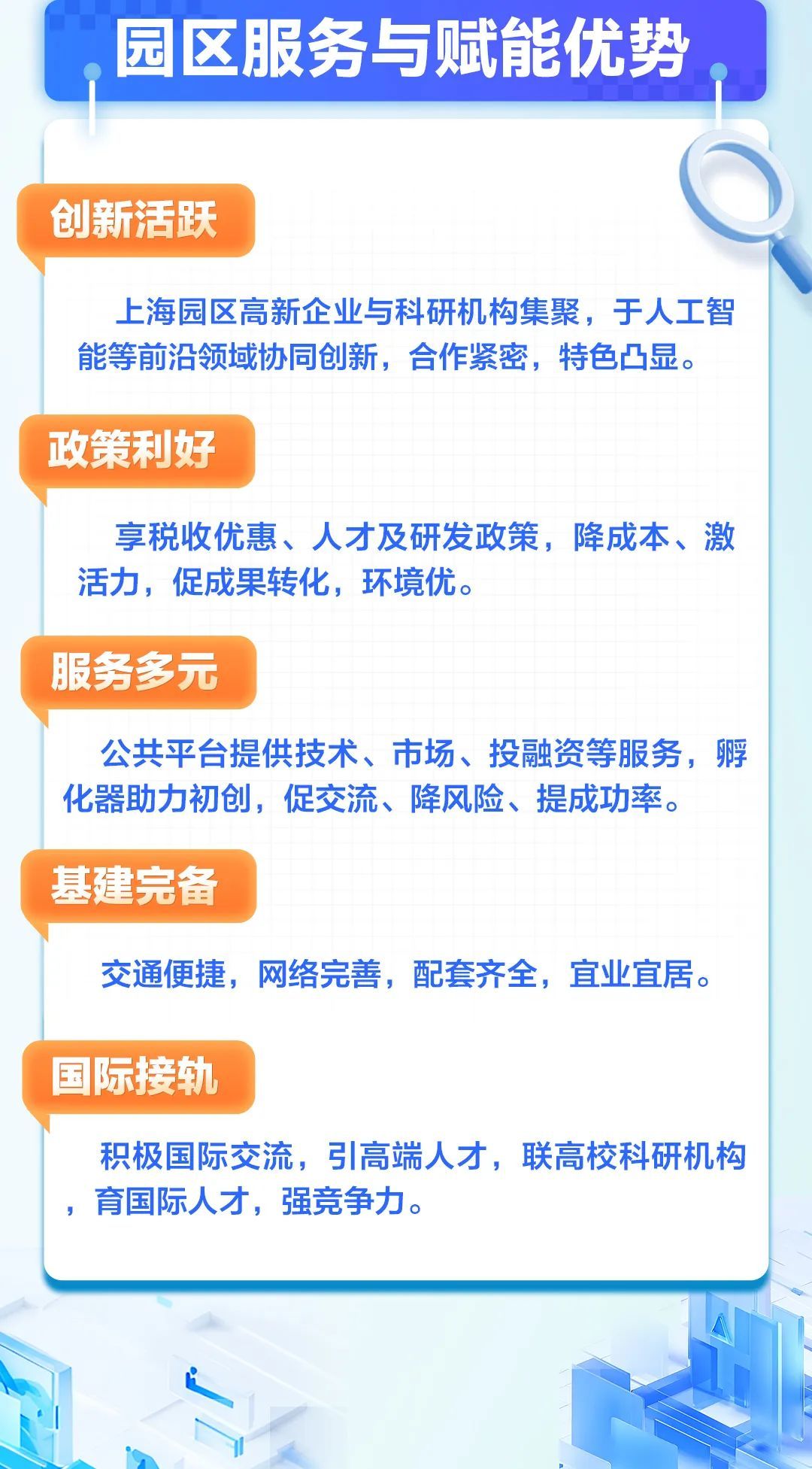 上海产业园区凭借得天独厚的地理位置、健全的基础设施体系、深厚的产业积淀以及卓越的创新能力,成为驱动上海经济蓬勃发展的核心动力。本期小贴士带您领略这座城市的创新魅力。