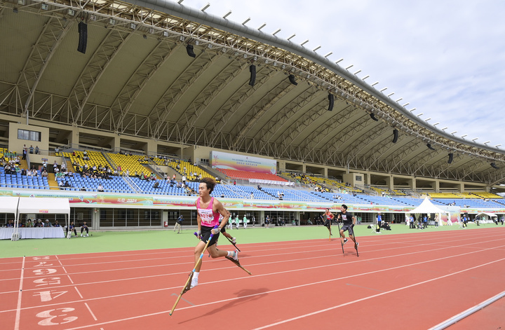 高脚竞速也叫高脚马,运动员双脚踩在绑了脚蹬的两根长竿上,脚蹬距离地面30—35厘米,竞赛规则和田径短跑项目类似。高脚竞速高脚杆接触点小,跑步采取顺步跑,对运动员的身体控制能力、协调性和平衡性要求很高。今年16岁的江苏代表团高脚竞速杨宇濛原来练习田径项目,3—4年前经教练推荐,兼练高脚项目,“一开始练习高脚的时候我也没少摔跤,随着自己带着高脚参加的赛事越来越多,成绩也越来越好。练习高脚项目也让我的田径项目技术有一定的提高。高脚项目作为传统体育项目,我们应该要把它传承下去。”