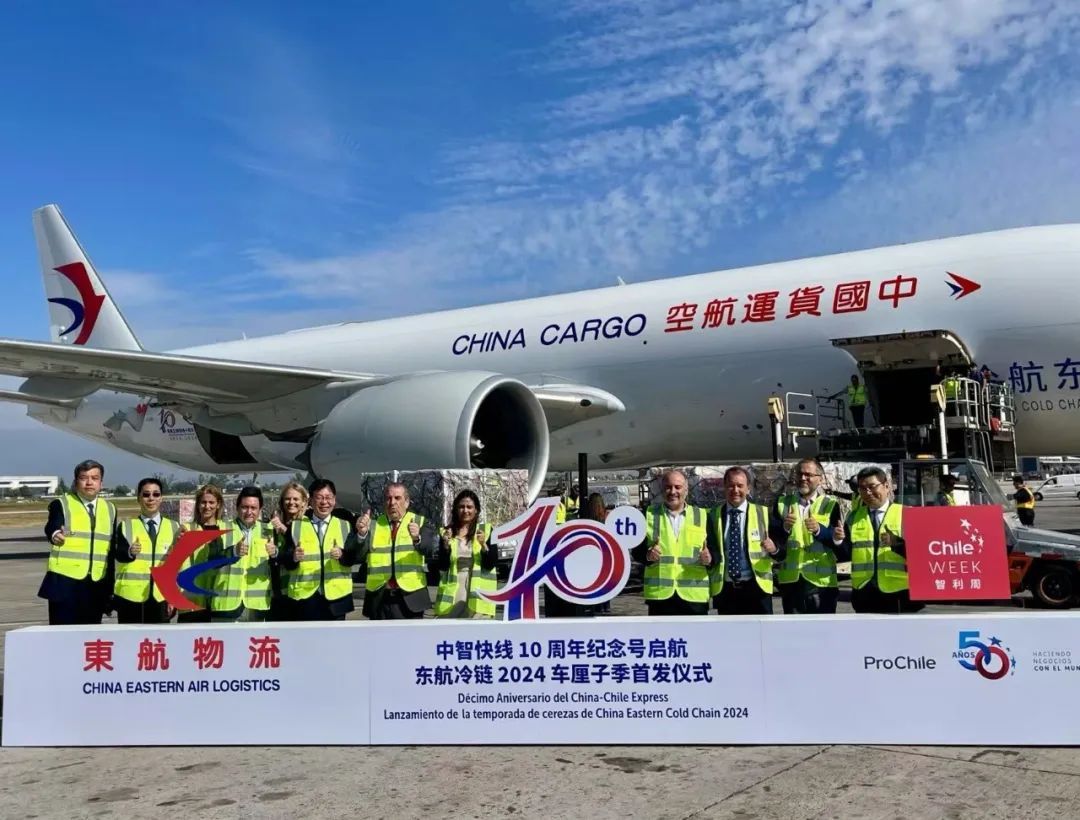 2024年11月20日上午10时50分,一架东航B777全货机,装载76吨智利新鲜车厘子,从遥远的南美洲、智利首都圣地亚哥飞抵上海浦东国际机场。十年以来,东航与智利方面合作的基础越来越深厚,通过数千个全货机航班、普通商业航班,以及海运包船,东航已累计进口智利车厘子、三文鱼等农产品超过5万吨,货值超过10亿美元。此次新一季智利车厘子随东航全货机抵达中国,践行着两国元首会见所倡导的“互利互惠、互联互通”,也是东航走过十年、持续深耕南美市场的新篇章;同时为中国与智利这对“彼此信赖的好朋友、合作共赢的好伙伴”,持续拓宽完善空中通衢。