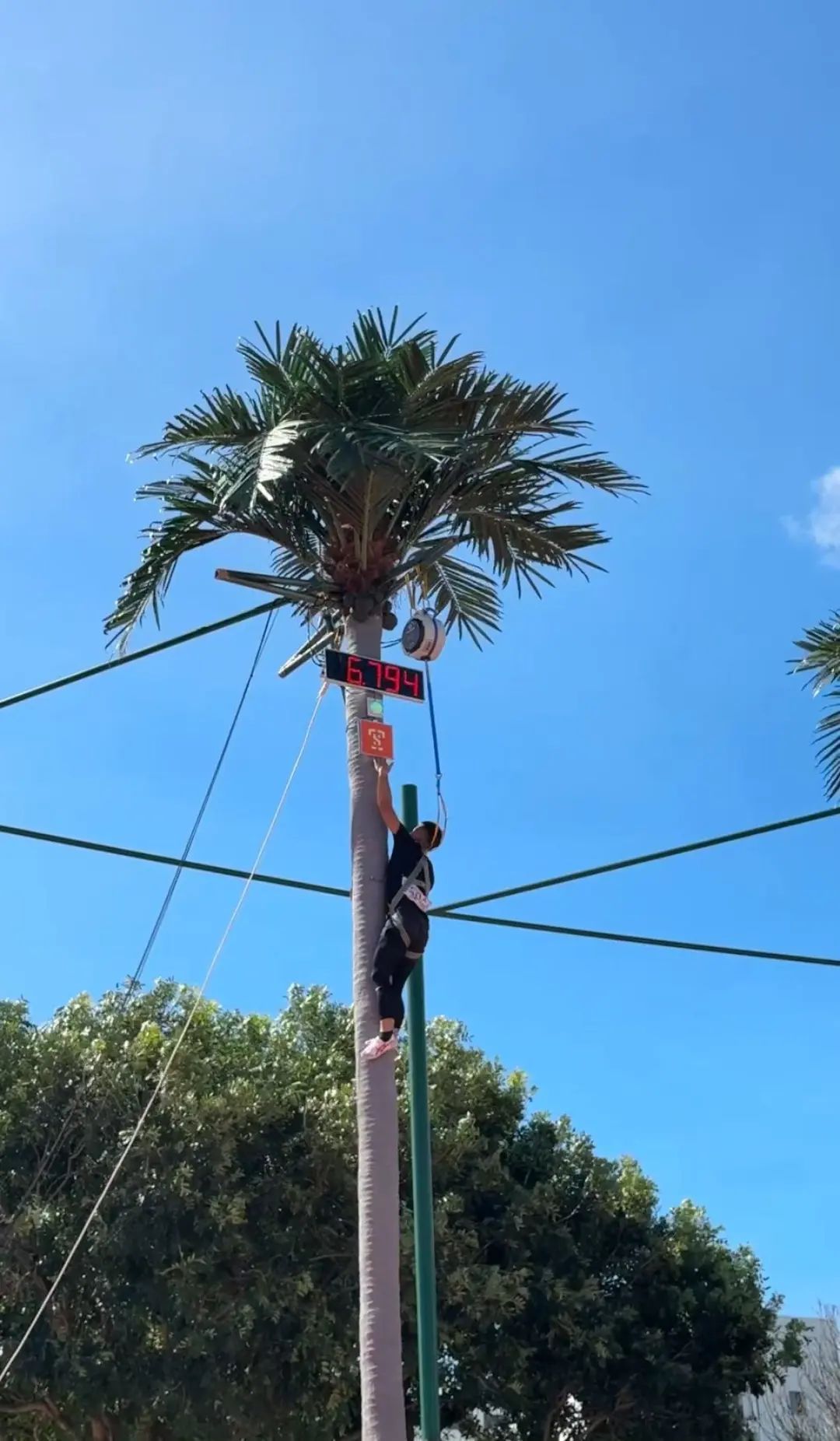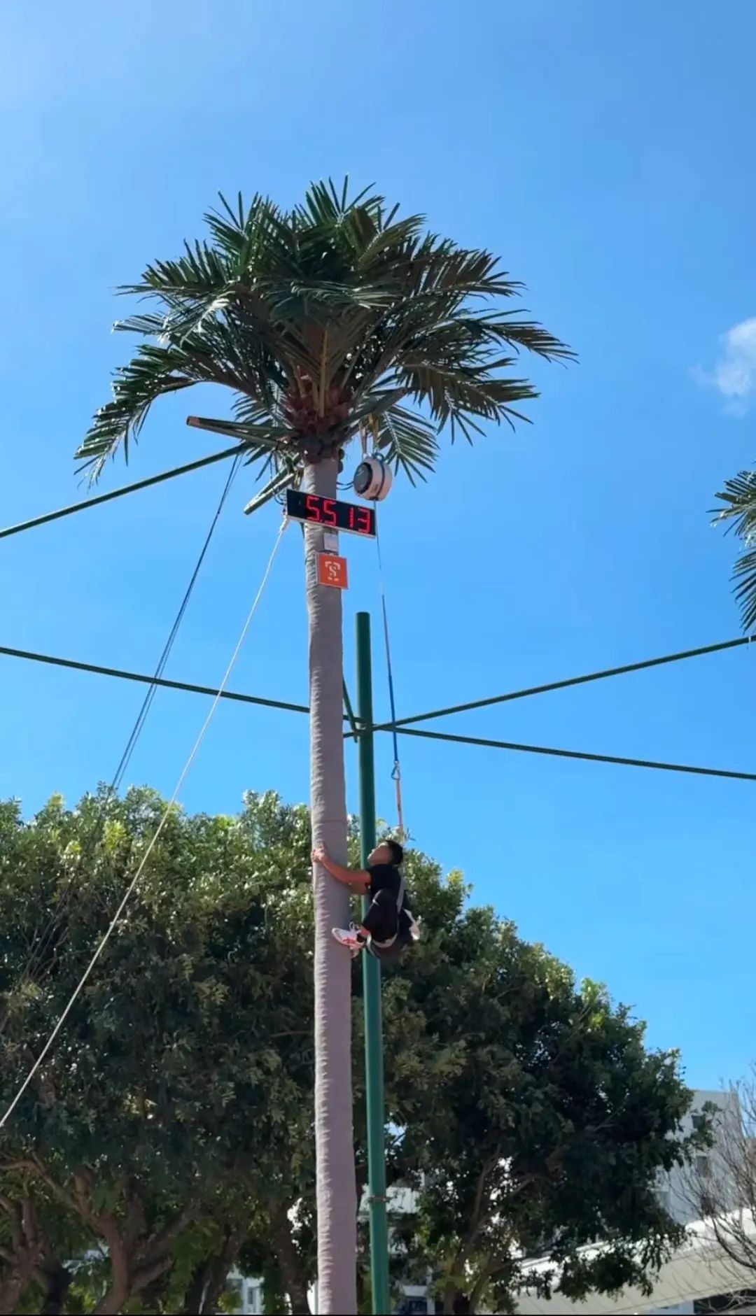 男女运动员分别需要攀爬9米、7米的天然椰子树或人工制作的仿真椰子树,自选攀爬姿势,爬至顶端摁计时按铃。这样一个集速度与力量为一体的项目,快到“还没开始就结束”。