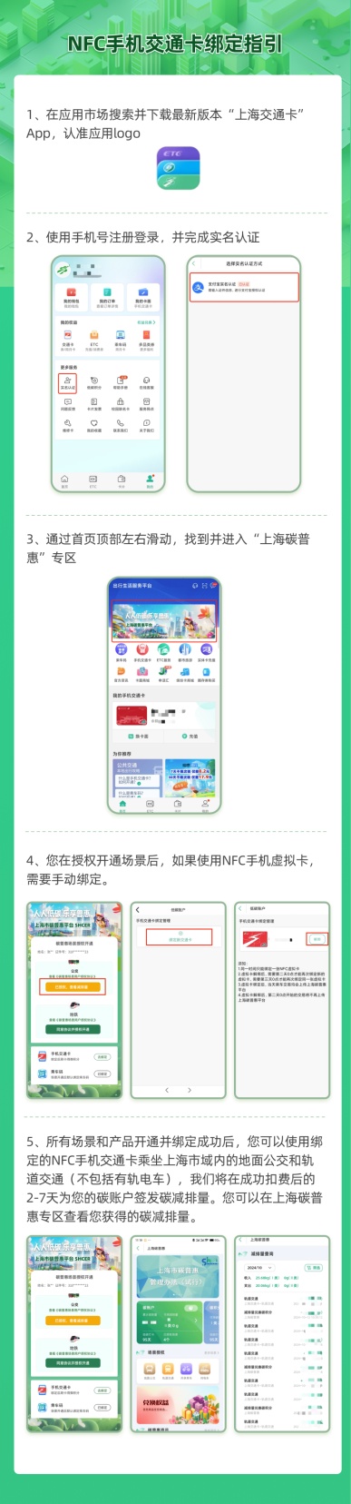 可以的,只要你开通的是上海公共交通卡发行的NFC手机交通卡,即可按照操作指引,下载“上海交通卡”App进行绑卡操作,绑定后,当天的所有NFC手机交通卡交易将记录减排量。