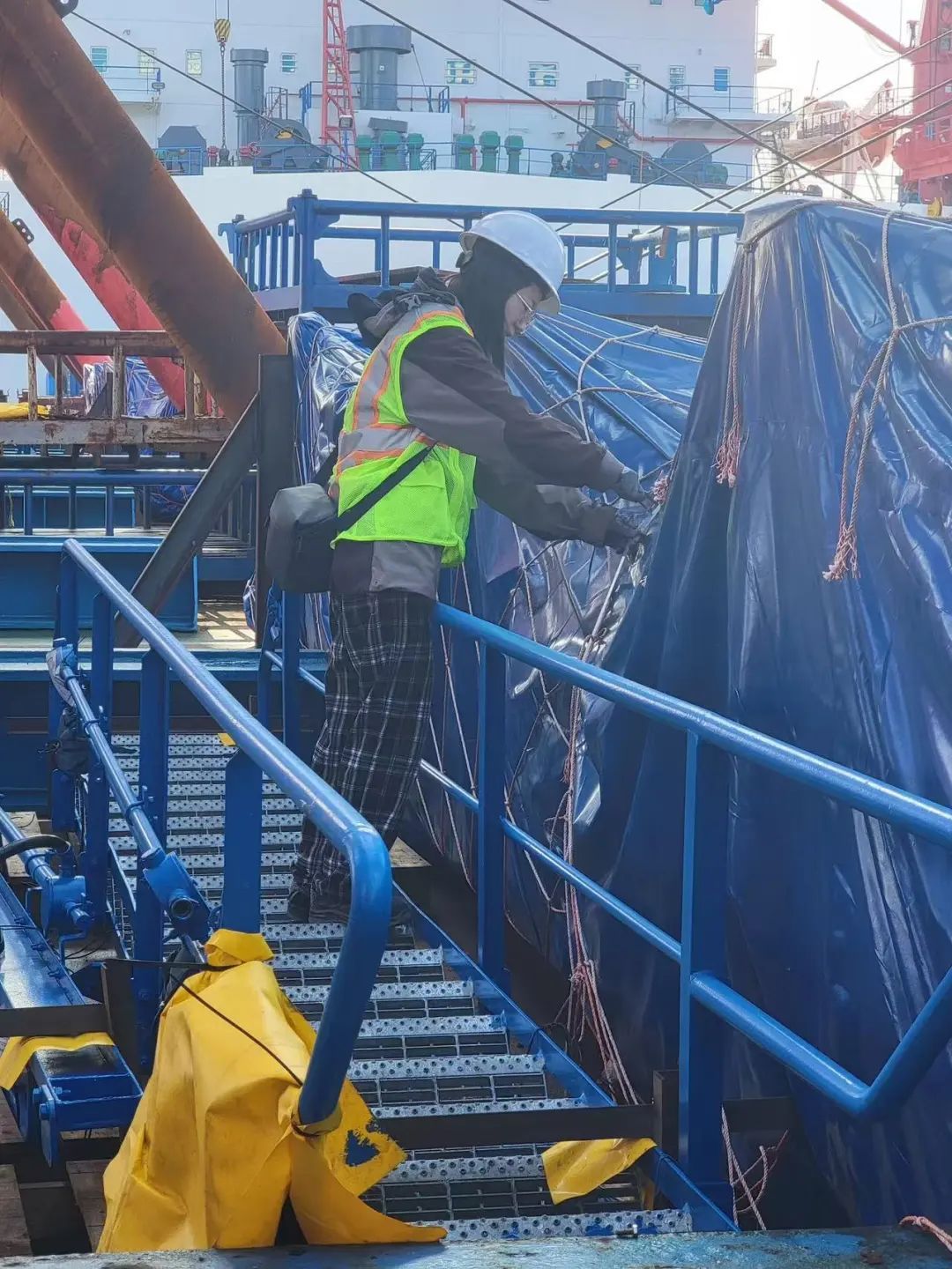 渐渐地,与当地人的沟通逐渐顺畅起来,球球和团队成员也在努力逐渐适应当地生活。走在码头,当地员工会热情地用“你好”打招呼,中国工程师也学起了西班牙语。从一开始的语言不通,到如今已是双向奔赴。