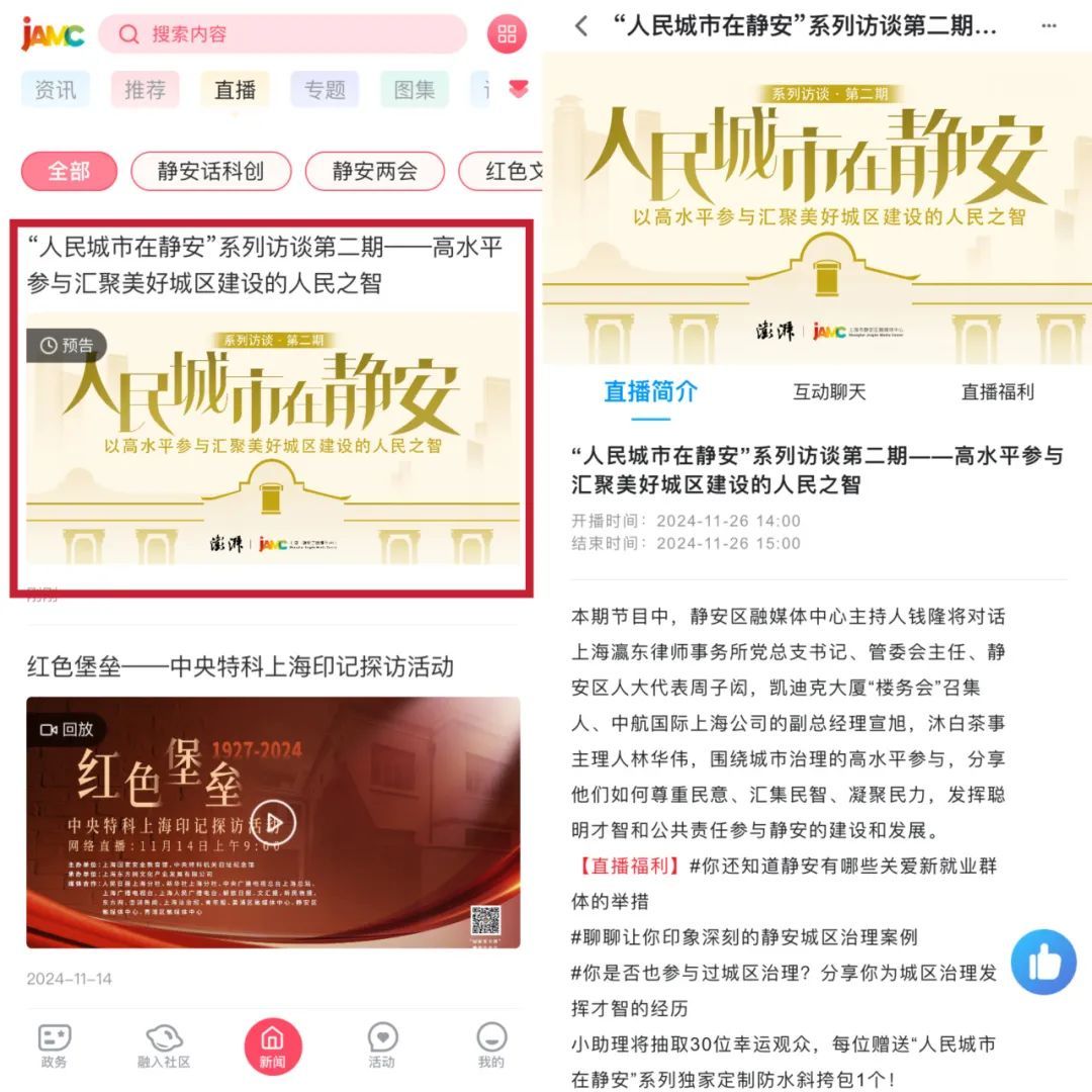 参与“上海静安”客户端直播互动