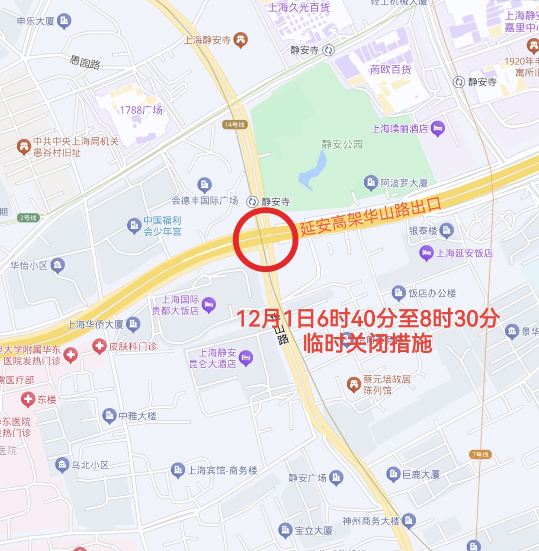 From 6:40am to 8:30am, the Yan'an Elevated Road off-ramp on Huashan Road will be closed.