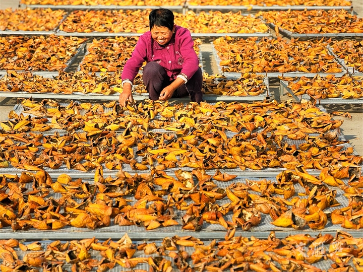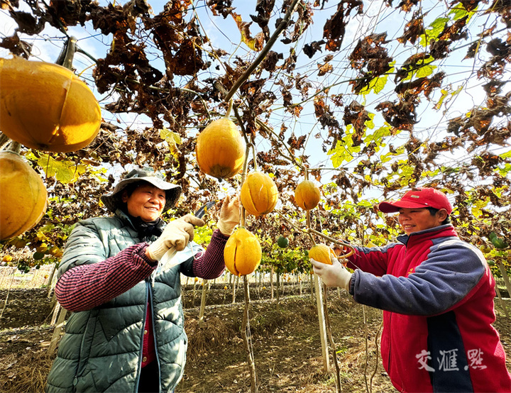 11月22日,农民在淮安市淮阴区丁集镇瓜蒌种植基地,忙着采收、晾晒瓜蒌。近年来,该区积极引导农民因地制宜调整产业结构,通过“合作社+农户”的模式,大力发展瓜蒌、冬枣、草莓等特色农业,促进农业提质增效,助力农民增收。刘须连摄 视觉江苏网供图