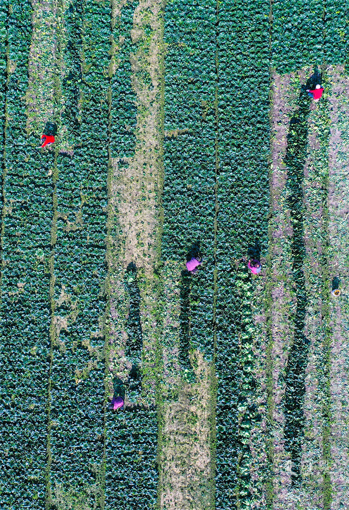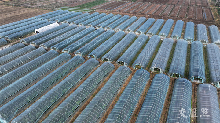 11月25日,灌云县圩丰镇直厅村,种植户在田间管理蔬菜。寒潮来袭,当地种植户通过多层覆盖、补光增温、加强田间管理等措施,促进蔬菜生长,保障市场供应。吴正祥摄 视觉江苏网供图