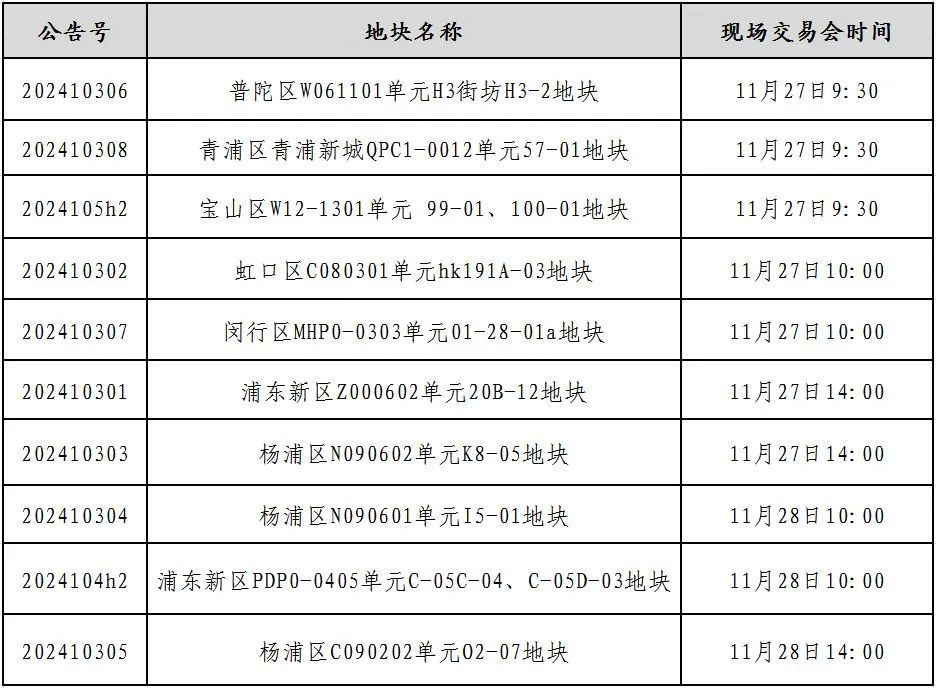 根据《上海市国有建设用地使用权出让沪告字[2024]第103、104、105号公告》的规定,现确定该公告现场交易活动安排如下: