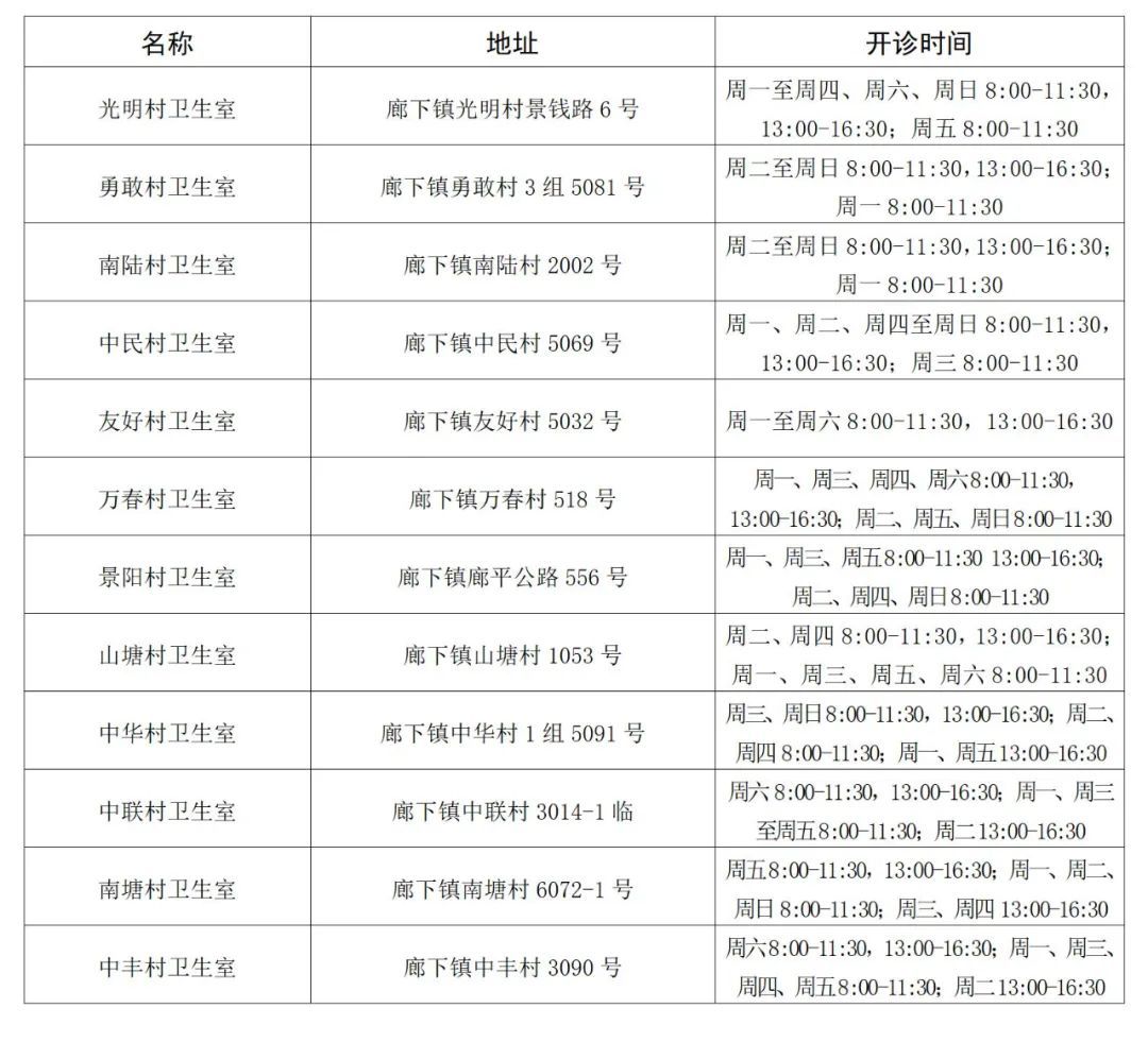 为更好地提供基层卫生健康服务,满足市民群众的看病就医需求,辖区内各村卫生室、社区卫生服务站的门诊安排来了,记得收藏哟~