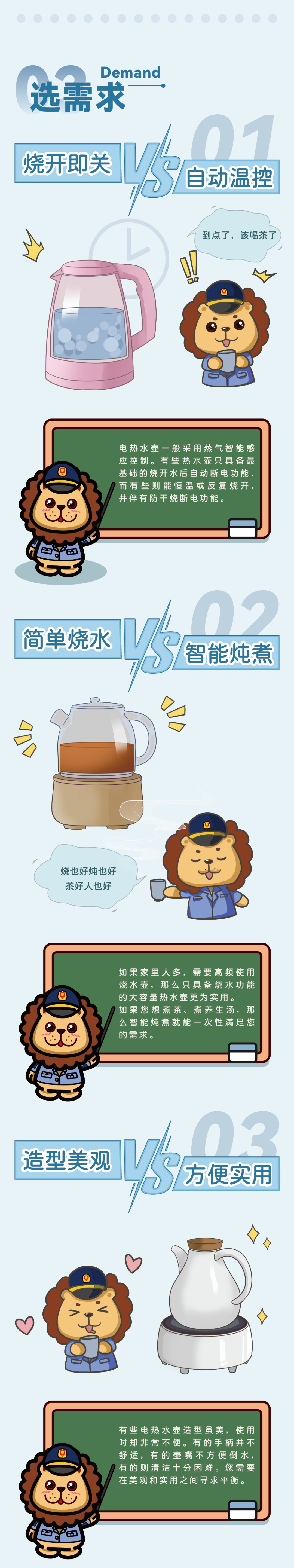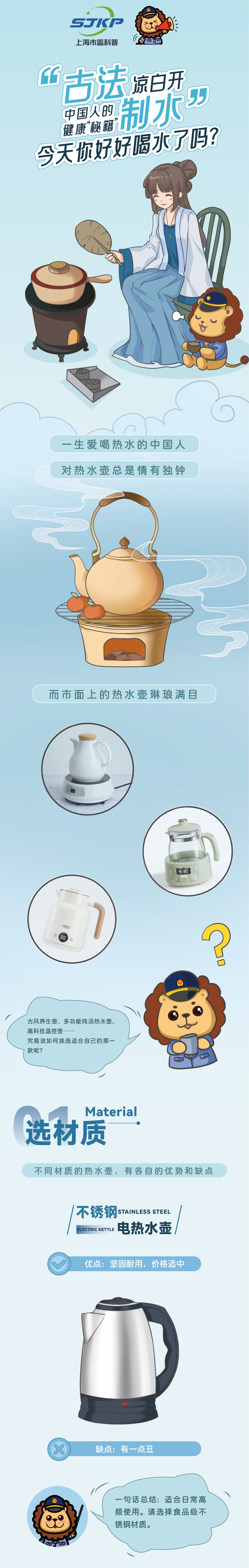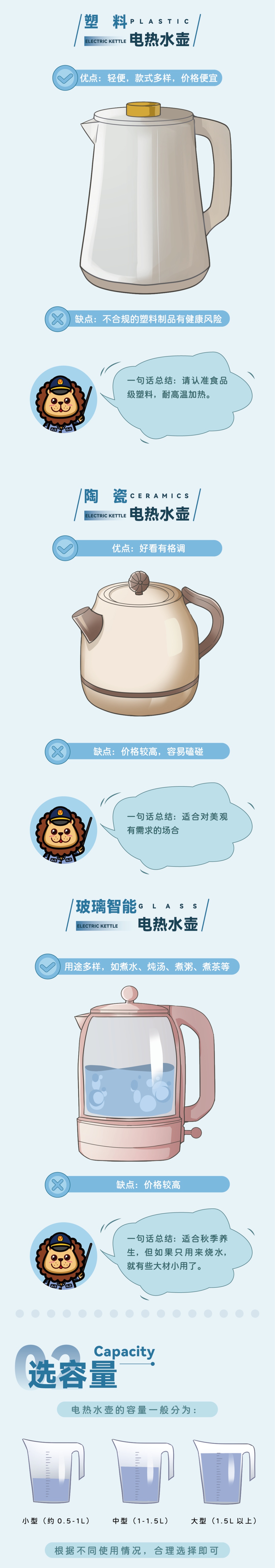 作为生活中不可或缺的家电之一,电热水壶可以方便快捷地为我们提供热水。塑料电热水壶、陶瓷电热水壶、玻璃智能电热水壶……面对市面上五花八门的热水壶,如何才能挑选到贴合自身需求的那一款呢?详见市市场监管局介绍↓