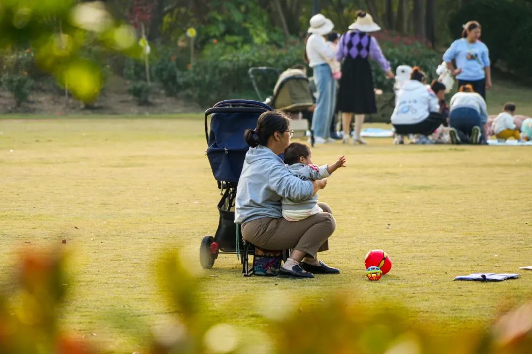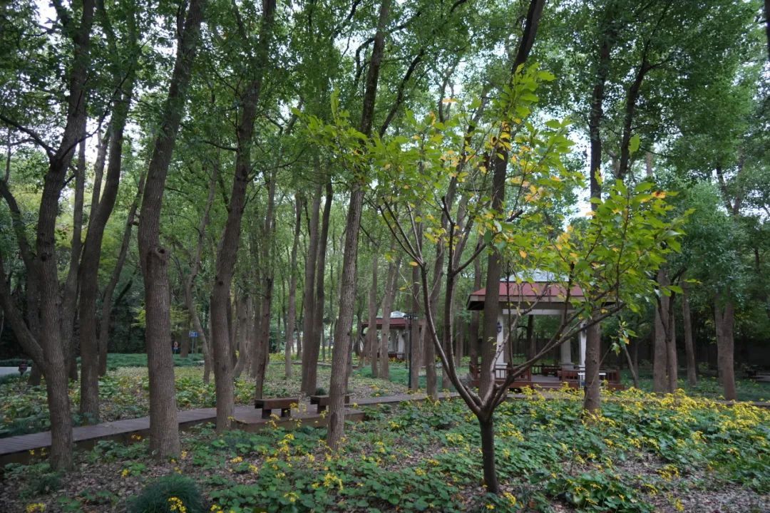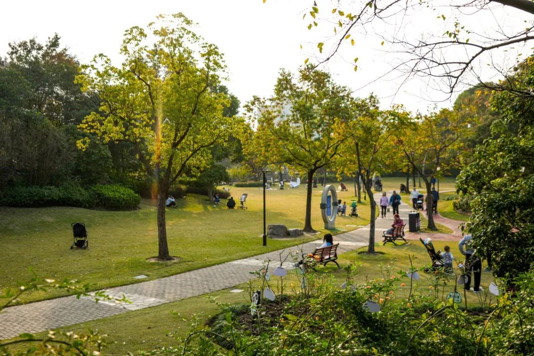 漫步在金鹤公园的小径上,耳边是微风拂过树叶的沙沙声,偶尔还能听到远处儿童的欢笑声和鸟儿的歌唱,让人心旷神怡。阳光透过稀疏的云层,洒在金黄色的小径上,营造出温暖而宁静的氛围。