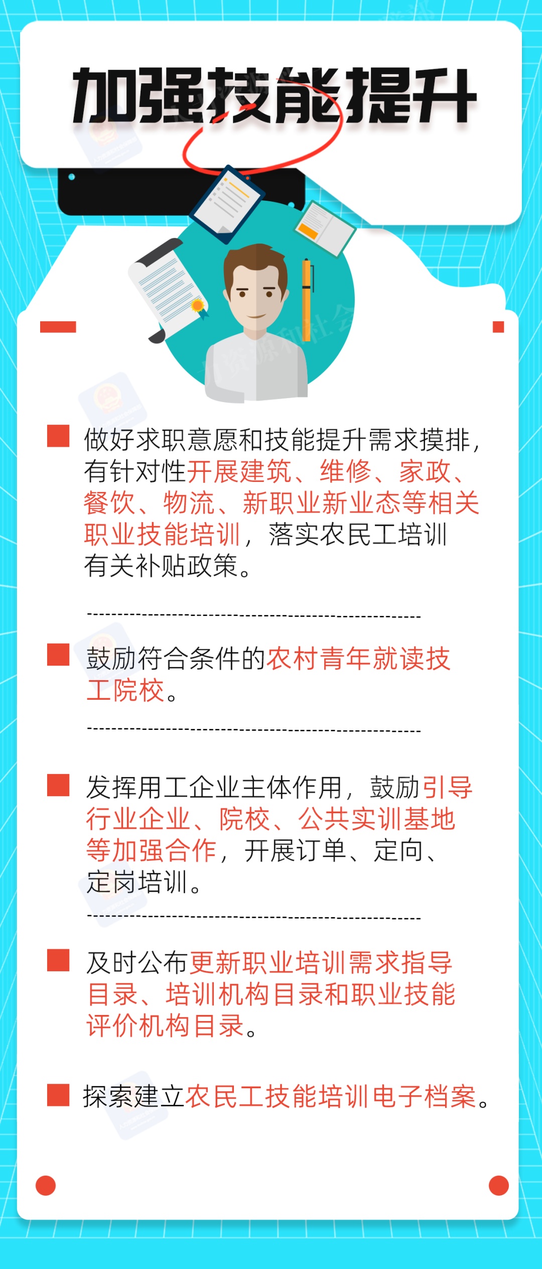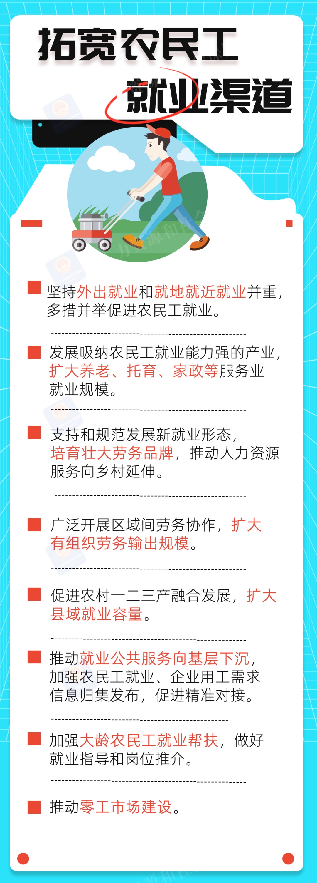 近日,人力资源社会保障部等10部门联合印发《关于进一步加强农民工服务保障工作的意见》,进一步促进农民工高质量充分就业,推动农民工市民化高质量发展。