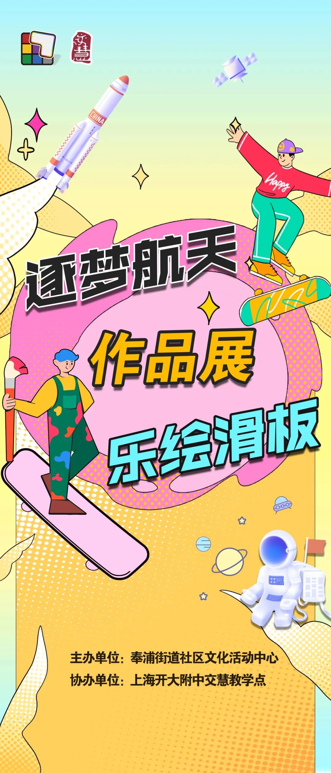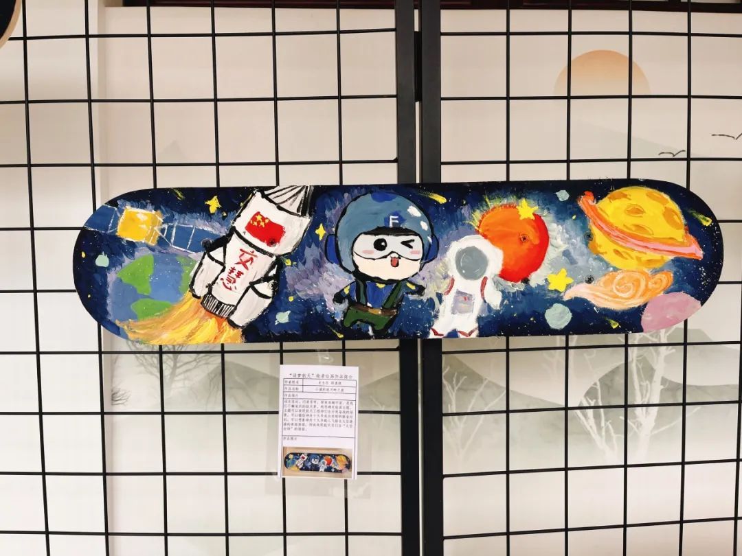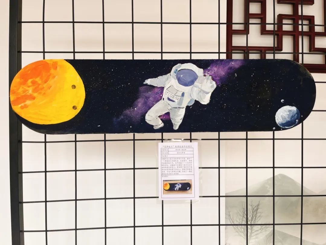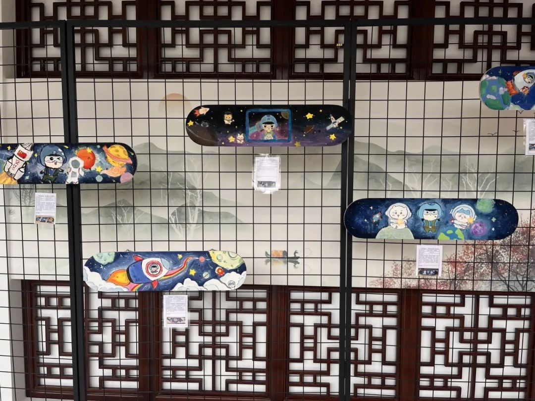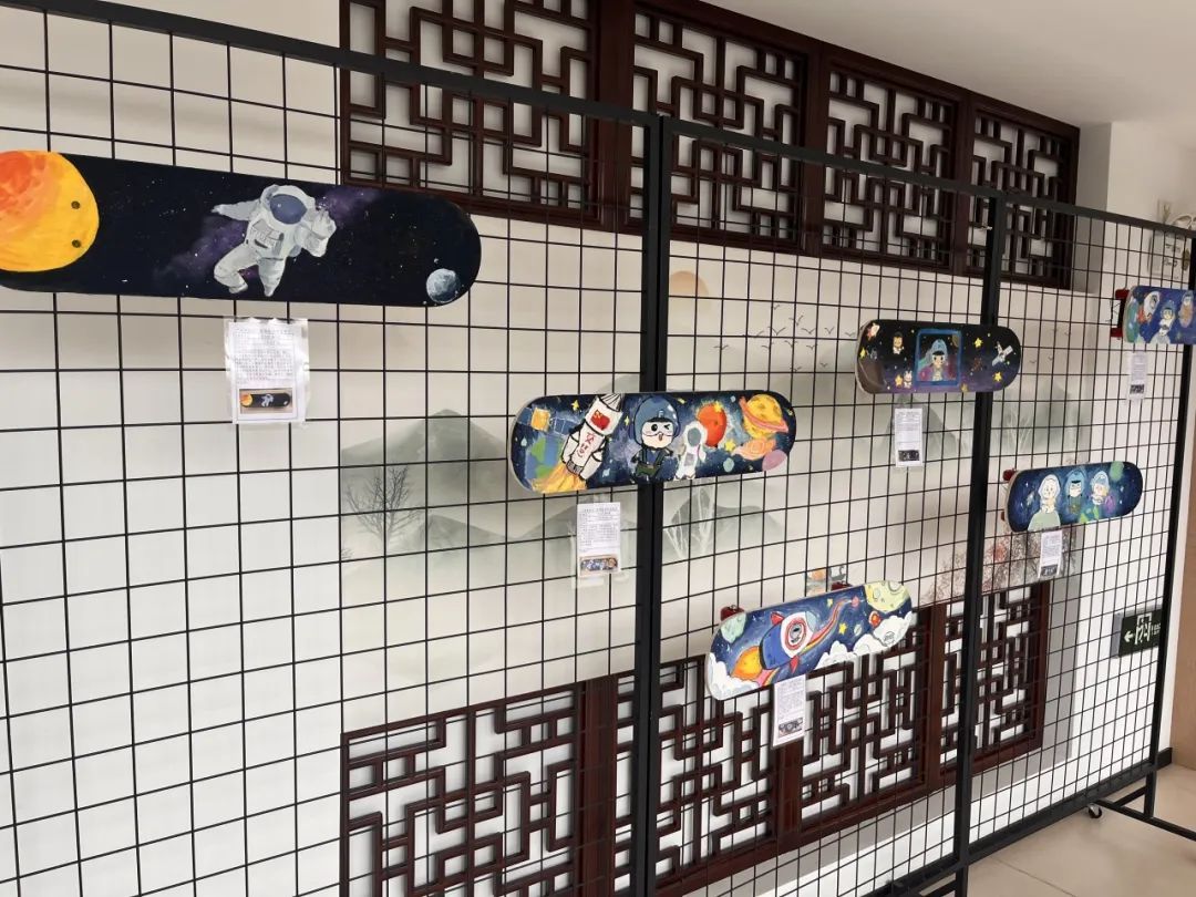 逐梦航天 乐绘滑板 奉浦街道社区文化活动中心与结对共建的上海开大附属高级中学交慧学校成功携手举办精彩滑板画展邀您共赏 你们是否曾仰望星空,对浩瀚的宇宙充满无限遐想?是否渴望通过一幅幅绚丽的画作,表达对航天的热爱与向往?现在,机会来啦! 为了丰富社区居民的文化生活,激发大家对航天的兴趣与热情,奉浦街道社区文化活动中心携手辖区内的优秀志愿团队——上海开大附属高级中学交慧学校,共同搭建起一座连接梦想与现实的桥梁,以“逐梦航天”为主题的乐绘滑板活动。这次活动不仅是一次艺术创作的盛宴,更是一次航天梦想的启航! 在活动中,来自交慧学校的社区志愿者们发挥学习所长,将自己在生活中、新闻上、书本上的各类对航天的认知和向往汇聚到这个独特的载体上,他们精心构思,巧妙运用色彩,以“交慧号”命名,让“小浦”搭载着神舟飞船,带领社区居民遨游太空。他们尽情挥洒创意与想象,每一笔、每一划,都凝聚着对航天的热爱与期待。从神舟飞船的雄姿到航天员的英姿,从璀璨的星河到神秘的太空站,一幅幅生动形象的画作在滑板上呈现,让人仿佛置身于那浩渺的宇宙之中。 乐绘滑板,共绘航天梦 经过紧张而激烈的评选,最终有16幅优秀作品脱颖而出,它们不仅展示了创作者们的绘画技艺,更传递了对航天事业的崇高敬意与美好祝愿。现在,这些作品即将在奉浦街道社区文化活动中心进行为期一个月的展出,展出时间为即日起至12月末。 展出期间,广大社区居民将有机会近距离欣赏到这些充满创意与梦想的滑板画作。每一幅作品都是一个精彩的故事,等待着你去发现、去感受。让我们一同走进这艺术的殿堂,共同见证航天梦想的绽放! 展出地点:奉浦街道社区文化活动中心二楼展厅 展出时间:即日起至12月31日 上午8:30~16:30 邀请您的到来 我们诚邀每一位走进这片艺术与科技交融殿堂的访客,踏上一场穿越时空的视觉盛宴。这里,不仅是一场滑板画展的绚丽展示,更是一次探索宇宙奥秘、领略航空航天魅力的奇妙之旅。在这里,你将感受到航天事业的伟大与壮丽,也将体会到社区居民们对美好生活的向往与追求。 ✦ ✧ 展区介绍 A区(二楼展厅) ✦ 步入展区,首先映入眼帘的是本次乐绘滑板展区,这里有16位同学的优秀作品,他们用作品表达对航天事业的崇拜和敬爱,描述我国航空航天事业的蓬勃发展和举世瞩目的辉煌成就。 在乐绘滑板展区的对面,摆放着精心制作的航空航天模型,它们陈列于光影交错的空间之中,仿佛刚从浩瀚星河中穿梭而来,静静诉说着人类对未知世界的无尽向往与勇敢探索。每一件模型都凝聚着工程师与设计师的智慧结晶,它们以细腻的工艺和逼真的细节,让人仿佛能听见引擎的轰鸣,感受到发射时的震撼与激动。 ✦ ✧ 展区介绍 B区(二楼展厅) ✦ 而环绕四周的灯光秀,则是这场航天之旅中不可或缺的浪漫篇章。采用先进的LED技术与编程控制,灯光在展区编织出一幅幅流动的星河图景,时而如银河倾泻璀璨夺目;时而似星云变幻,神秘莫测。 ✦ ✧ 展区介绍 C区(青少年活动基地) ✦ 特别设计的“宇宙的吊灯”更是将这场光影魔术推向高潮。这些吊灯不仅形态各异,灵感源自宇宙中的行星、星座与黑洞,还通过色彩与亮度的微妙变化,模拟出宇宙深处的光影交错,让人仿佛置身于无垠的宇宙之中,体验着一场心灵上的星际旅行。 在这里,艺术与科技完美融合,不仅让参观者得以近距离感受航天科技的魅力,更激发了每个人内心深处对宇宙的好奇与向往。每一束光、每一抹色彩、每一个模型,都是对“筑梦航天,乐绘未来”这一主题最生动的诠释,鼓励着每一个人勇敢追梦,不断探索未知。 逐梦航天,我们一直在路上 未来,奉浦街道社区文化活动中心将继续携手更多的志愿团队和社区居民,开展更多丰富多彩的文化活动,共同营造和谐、美好的社区文化氛围。以这次“筑梦航天”为主题的乐绘滑板活动为契机,一起开启探索宇宙的奇妙旅程!期待在展出现场与您相遇,共同见证航天梦想的绽放与闪耀!