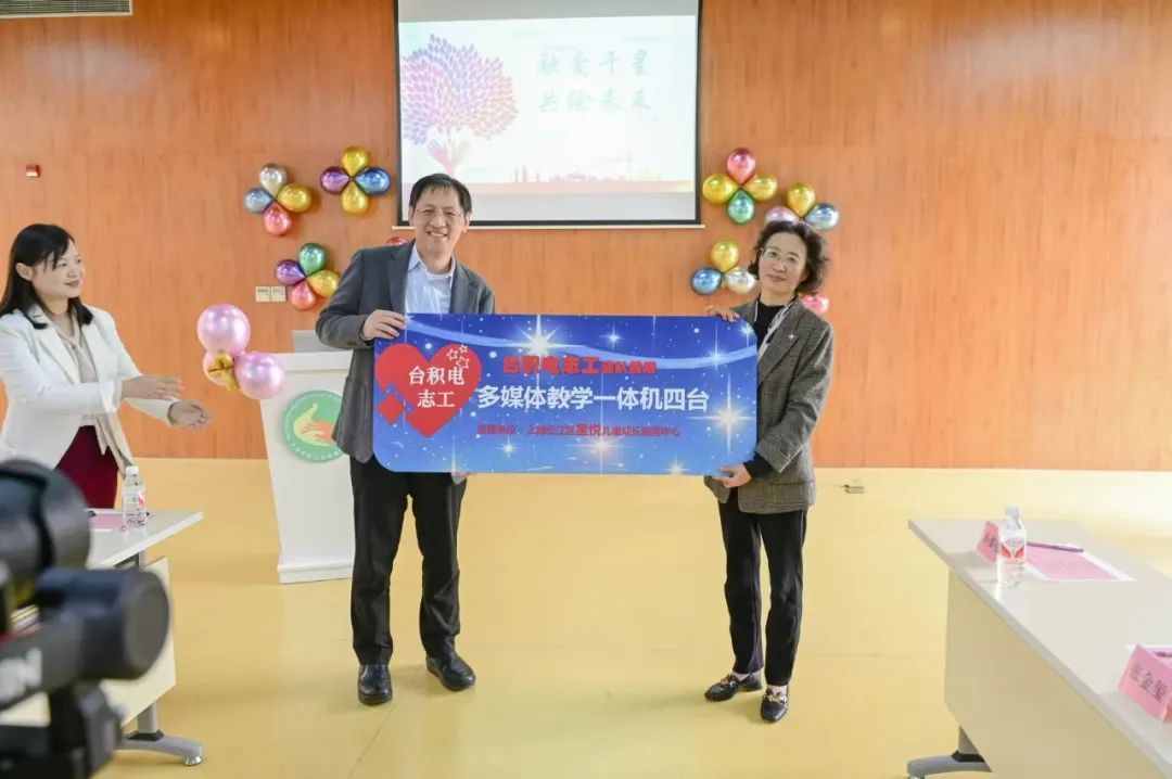 除了捐赠教学设备,台积电还给孩子们精心准备了学习用品礼包,台积电志愿者工作项目“融爱于星 共绘未来”——“守护星星的宝贝”温情港湾揭牌。台积电(中国)有限公司厂长钟久华表示,希望通过设立志愿者服务点的方式,将这份关爱持续延伸下去,不仅在物质上给予孩子们帮助,更要在精神上陪伴孩子们成长,为他们创造一个更加温暖、友好的成长环境。