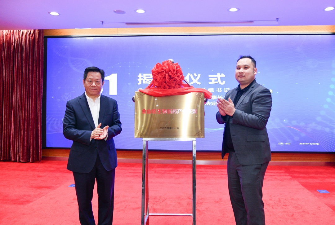 会上,刘豫峰和联盟理事长单位上海万仕诚药业有限公司共同为金山区生物医药产业联盟揭牌。48家生物医药企业、医院、高校、金融机构等单位首批加入联盟。