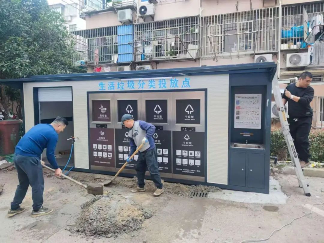 宝山区张庙街道通河三村原有三个垃圾箱房,其中两个作为垃圾流转使用,不对外开放。101号楼旁边的垃圾箱房正常投入使用,平时居民都将垃圾投放到这个回收点位。按照上海市统一要求,根据便利居民投放的原则,通河三村业委会决定拆除101号楼旁边的垃圾箱房,原址原建升级改造为新的四分类投放点。