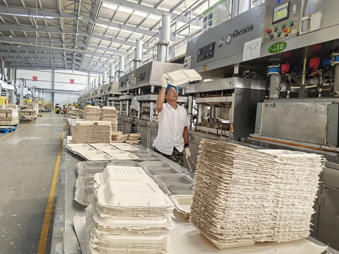 “我们目前的订单已经排到了明年9月,目前生产出的可降解餐饮具以出口为主,出口产品面向德国、意大利、美国等市场,占总产出的95%以上。”熊小琴是绿赛可新材料(云南)有限公司的负责人,公司充分利用甘蔗产业作为耿马“一县一业”的原料和生产优势,以蔗渣浆为原料,生产可降解餐饮具。今年,绿赛可新材料(云南)有限公司为200余人提供了就业岗位,总产值有望达到1亿元。