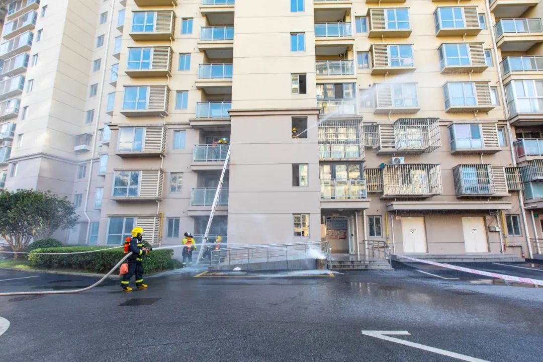 11月26日,普陀区桃浦镇新杨园区就高层住宅开展消防宣传月综合救援演练与消防安全宣传活动。一个“人人讲安全、个个会应急”的全员消防网通过实地实操演练正在基层织密、织牢。