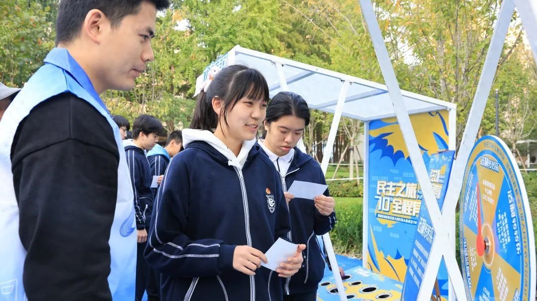 西南位育中学的部分学生也来到了游园会现场,参与人大知识的学习,田林人大的工作人员将这些知识点化身为他们日常生活中的小例子,让孩子们能够直观地了解什么是人民代表大会制度。来自西南位育中学的学生陈曦文说,这些生动的例子,让她了解到人民代表大会制度是一种全过程的人民民主,它是全覆盖的,让大家都能参与到政策讨论当中。