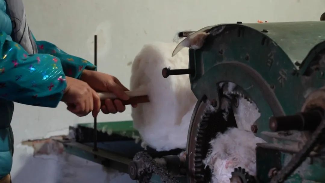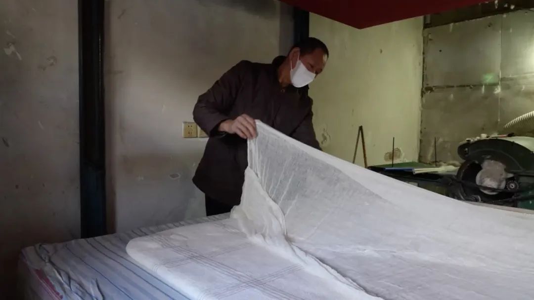 走进店内,一股温暖而熟悉的气息扑面而来,老板吕国涛和妻子围着梳棉机忙碌。“以前用弹棉弓和棒槌,一天最多弹两床,现在有了梳棉机和磨床机,一天能弹十床被子,真是方便不少!”吕国涛说。