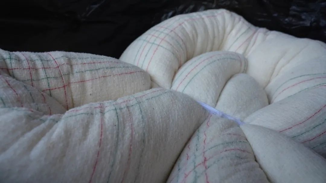 伴随着机器的运转声,那些原本压扁、毛糙的老棉也逐渐变得蓬松柔软。吕国涛的妻子手持竹棍,轻轻一卷,片片棉絮就像棉花糖一般被温柔地卷起,整齐地摞在一旁。“这两天上海降温了,生意一下子好了起来,一天要来十几二十个客人,我们两个人忙不过来,订单都要排到后天了。”吕国涛说。