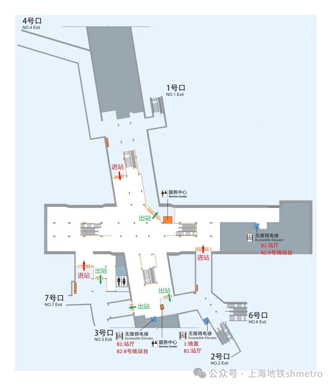 为提升乘客出行体验,8、9号线陆家浜路站厅于2024年11月29日至2024年12月23日进行升级改造。根据规划,8、9号线站台至站厅的无障碍电梯将可实现乘客自助使用,同时乘客无需出站即可使用7号口的卫生间。