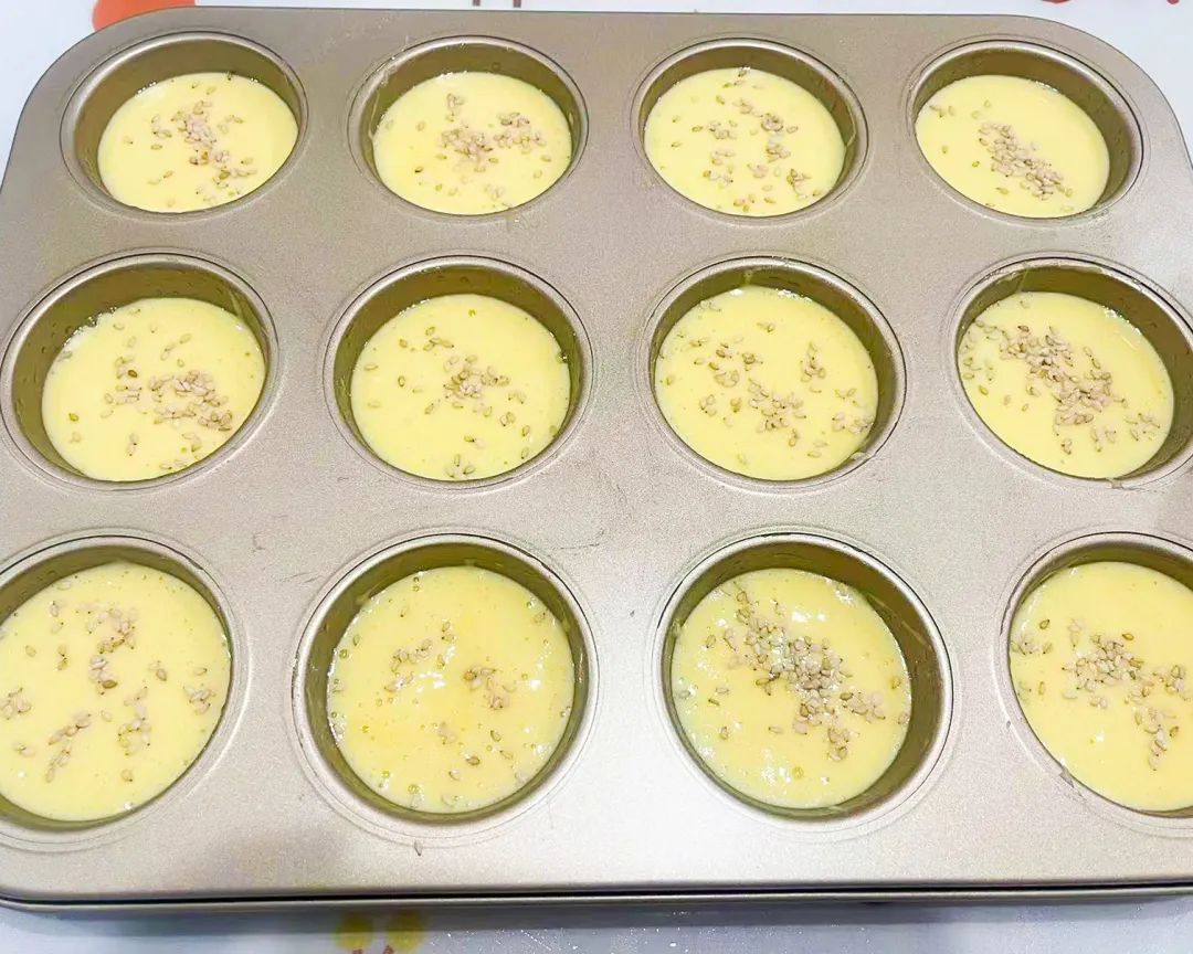 今天小嘉教大家做一款老式脆皮鸡蛋糕外酥里嫩、香香甜甜梦回小时候的味道~准备材料4个鸡蛋、80克白砂糖、120克低筋面粉、玉米油、芝麻制作过程1.将4个鸡蛋、80克白砂糖倒入碗中,打蛋器高速打发,再筛入120克低筋面粉搅拌均匀。2.在模具上刷一层玉米油,倒入面糊后撒上芝麻。3.烤箱提前预热,170℃烤20分钟便可出炉。还可以在面糊中加入蓝莓干,做成蓝莓味的。热乎乎的蛋糕咬一口可解馋了就是这个味儿快来试试看吧~