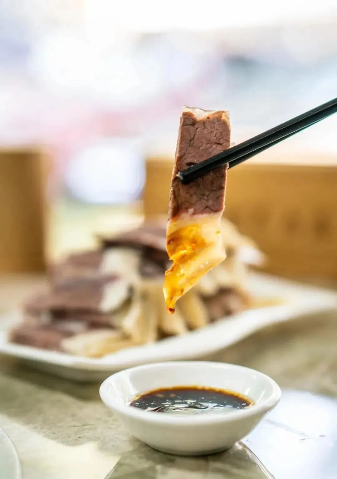 白切羊肉做法相对简单,最讲究的是羊肉的新鲜度,还需把握烧煮时间,时间短了肉不烂,时间长了肉会散,最好是现做现吃。这道菜原汁原味地保留了羊肉的鲜香味,细看羊肉的肉丝,肉质细腻、纹理清晰。轻轻咀嚼,鲜而不膻、清而不淡、酥而不柴,唇齿间透着一股羊肉纯正的香气,越嚼越香,真是过瘾!羊肉温婉,张弛有度,内敛大气,瞬间入驻吃货的心房。