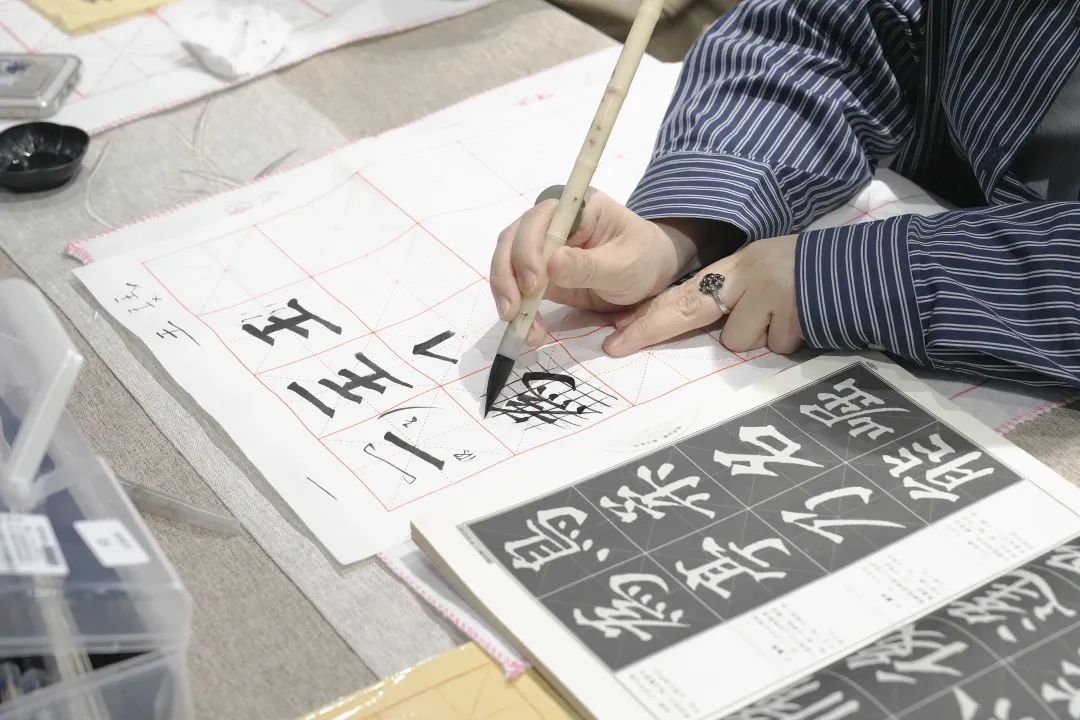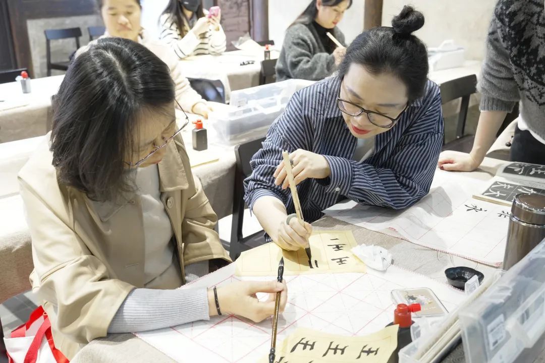 上海市书法家协会会员杜婧以颜真卿楷书《多宝塔碑》作为基础教学课本,从“王”字入手,讲解书法基本的结字结体、执笔口诀“按、押、勾、格、抵”、悬针竖与垂露竖的区别等。杜婧在每位学员桌前一一指导,大家对照着示范字一笔一画认真书写,根据提示慢慢调整书写结构。“每一笔横画,都可以有不同方向的逆锋起笔。在细节处微妙的变化,可以写出相同笔画的不同美感,这个书写过程是件很有乐趣的事。”杜婧先后以“非”“永”等字为例,示范怎样把横写出变化、颜体中两竖左细右粗的写法、永字八法等,灵动的笔法和对字体结构的把握引得学员们连连赞叹。“我们的课程从基础笔画开始,最后以书写包含所有基础笔画的‘文明修身’四字结课。希望学员们能从中了解书法的点线行止、墨色枯润,在笔法、字法、章法、墨法中,体会书法的美感。”杜婧说。据悉,文明修身国风书法班将持续至明年10月,课程期间,主办方还将结合传统节日和节气,推出书写春联福字、颜体闹元宵、国风扇子绘制、书法创作等课程。每堂课将于课程前一周的周三10点开启报名,感兴趣的市民可通过“文旅嘉定云”App报名参加,名额有限先到先得。