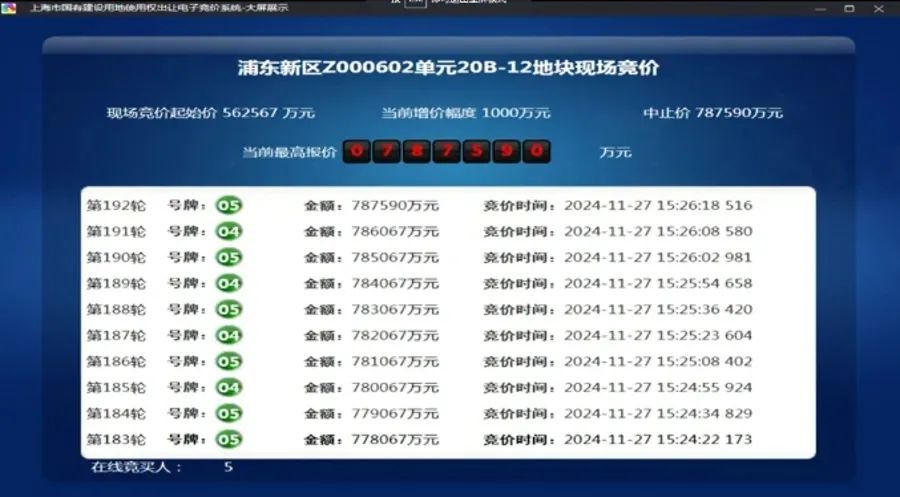 新杨思地块首轮竞价192轮