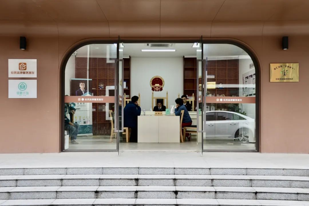 庄严的国徽下,审判席位于中央,当事人席在前侧,位于徐汇区华泾镇大桥居民区内的社区司法服务联络点肃穆而庄重。11月25日,徐汇法院“甘棠树下”社区法官工作室的王建芬法官在此主持开庭,连续审理了四起房产继承纠纷案件。