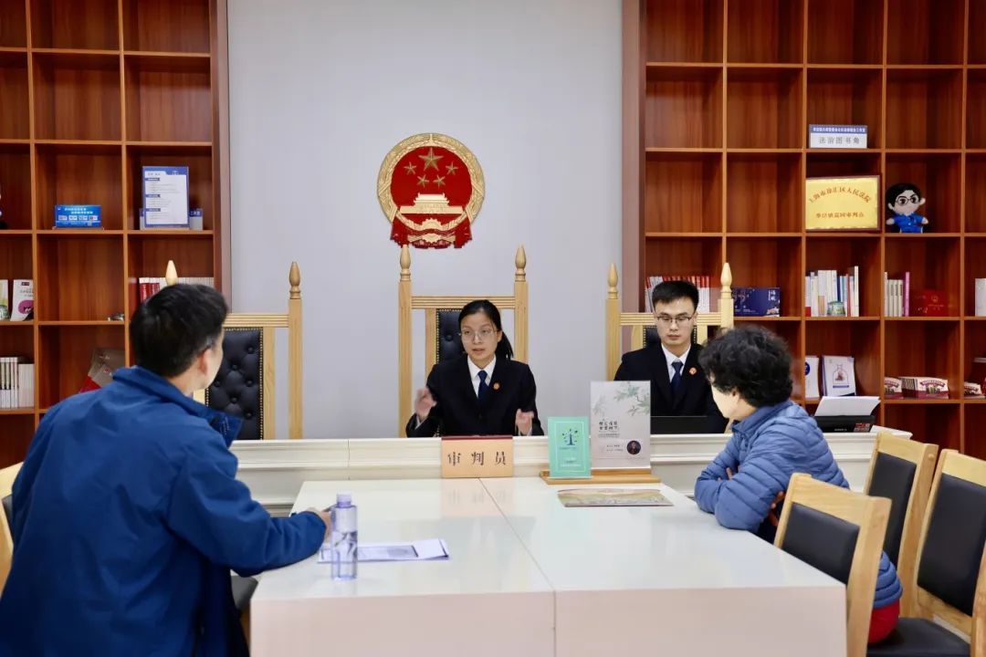 开庭前,四起案件经过华泾镇“冯斌劳模创新工作室”调解员细致的材料收集和耐心的调解工作,达成协议后再递交法院进行开庭司法确认。现场,开庭审理过程流畅、简洁、高效。四起案件涉及的当事人来自徐汇、浦东、杨浦、长宁及昆山等地,涉及六套房产及十多位当事人,庭审结束,他们对调解员和法官的高效工作表示衷心感谢。“这里虽然简易,但坐在国徽下,敬畏之心油然而生,庭审过程也非常高效,我们也方便很多。”当事人李先生表示。