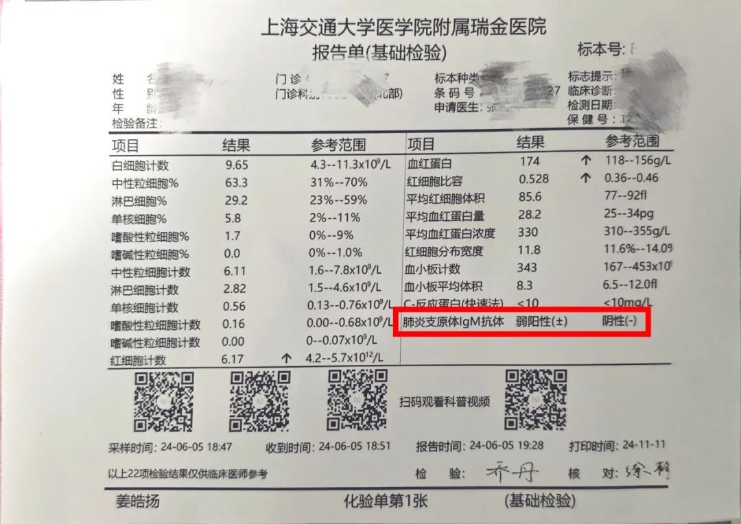 举例说明,如果就诊时病程只有3-4天,肺炎支原体IGM阳性大概率就和本次感染无关,代表既往3个月内曾经感染过。
